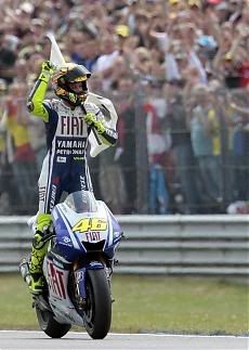 Rossi domina il Gp di Olanda, il pubblico, gli sponsor. Con la conquista la centesima vittoria di oggi, ottenuta a suon di giri record e relegando d'autorità al secondo posto Lorenzo (5 secondi di distacco) e al terzo Stoner con più di 23 secondi, il funambolo di Tavullia si consacra ancora una volta un pilota di una categoria a parte. Non più ormai solo una questione di stile di guida o di velocità. Come scrive "stepio" nel blog "Rossi ha reso la Honda insuperabile. Ha reso Yamaha insuperabile. Non è grande solo in pista": Valentino infatti fa la fortuna della marca per cui corre perché riesce a guidare come pochi i tenici e a indirizzarli verso la messa a punto e lo sviluppo ideale della moto. Se poi a questo aggiungete che fa la fortuna anche di team e sponsor...