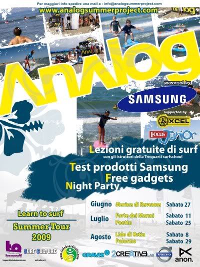 Bagno Royal, Via Arenile, 21 - 55042 Forte Dei Marmi (LU) - 11/07/2009Orario: dalle 10:00 alle 16:00 (Lezioni gratuite di surf per tutti e test prodotti Samsung).